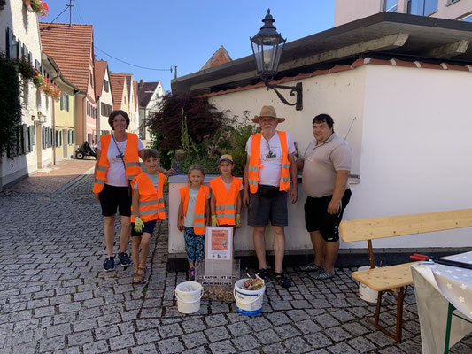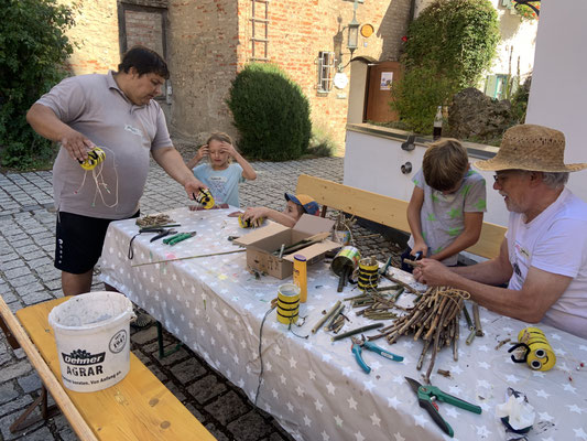 „Basteln und Ploggen mit Transition Town Donauwörth e.V.“ hieß es am Dienstag, den 19. August. Auf dem Gelände des DAV wurden am Vormittag Insektenhotels aus Dosen und Kronkorken hergestellt und anschließend unter Anleitung fachgerecht befüllt. Hierbei konnten die anwesenden Kinder von Johannes Thum und Imker Michael Näpfle von Transition Town Donauwörth e.V., erfahren, worauf es bei der richtigen Wahl der Gehölze und deren Zuschnitt ankommt. Im Anschluss an die erfolgreiche Bastelarbeit sammelten die Kinder noch Müll und v. a. Zigarettenkippen in der Reichstraße und staunten nicht schlecht, über die Menge, die sich da in kurzer Zeit finden ließ. Passanten dankten es ihnen mit viel Lob, ein Donauwörther Gastwirt spendierte den fleißigen Ploggern ein Eis.
